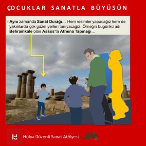 Eğitim Hakkında: ‘ÇOCUKLAR SANATLA BÜYÜSÜN’ başlıklı buluşmamızda, deniz kenarında koruluk bir alanda iki önemli ören yeri olan Assos da bulunan Athena Tapınağı ve Gülpınar’da bulunan Apollon Smintheion’a yakınız. Buralar hakkında tanıtımlar yapacak, bölgenin sanatsal ve tarihsel kimliğine bakacağız.